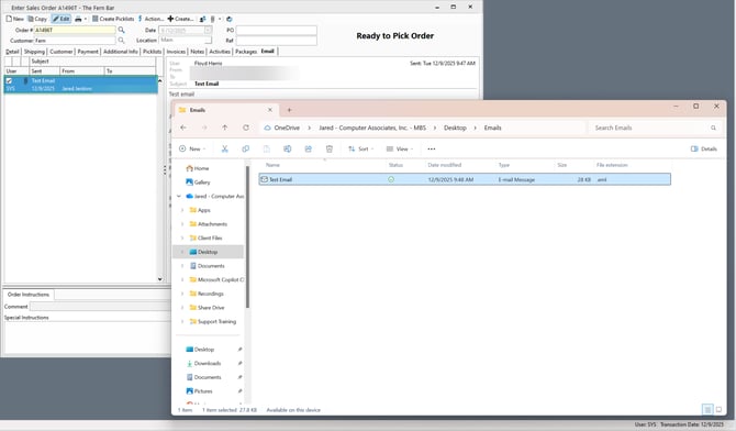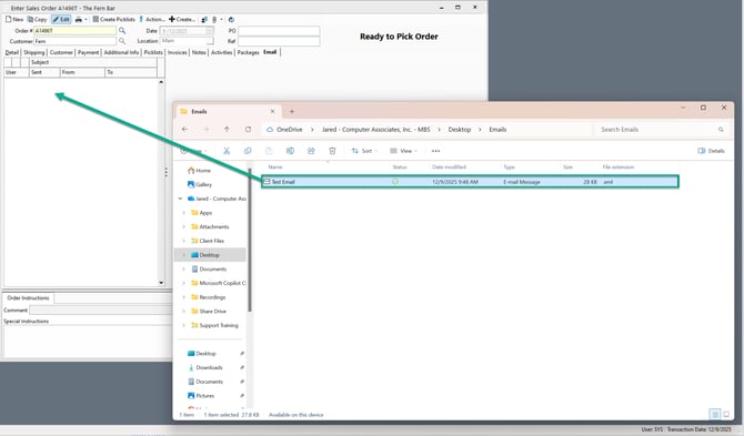 When using New Outlook, you are not able to drag an email from Outlook and drop it directly into the email tab of an Acctivate window (e.g., the Enter Sales Order window).